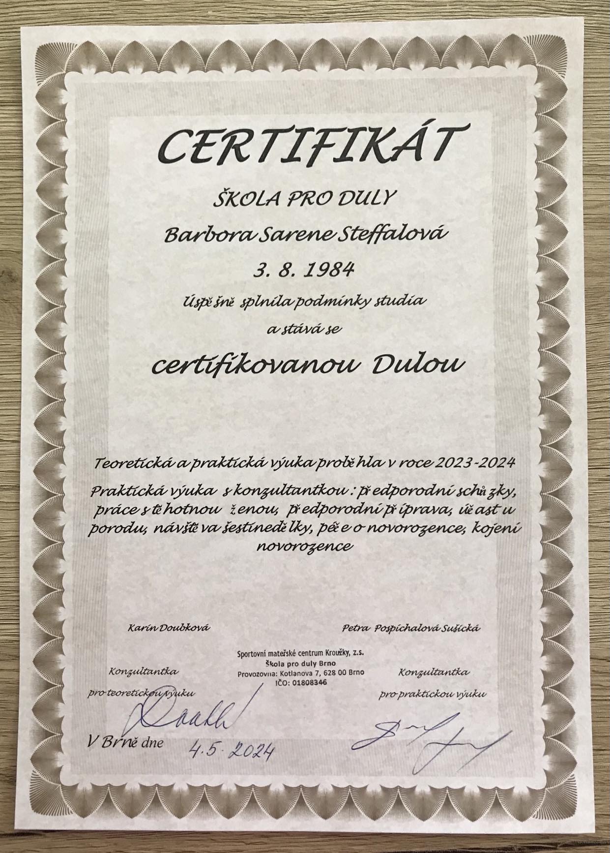 Jako certifikovaná dula nabízím nejen předporodní přípravu, doprovod a podporu při porodu, ale i zpracování placenty po porodu dle vašeho přání. Velice ráda Vás navštívím i v období šestinedělí. Péči o ženu v tomto období vnímám jako velmi důležitou a často opomíjenou.
